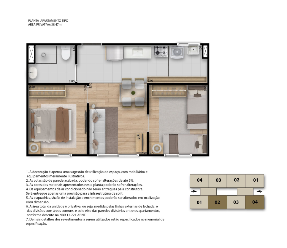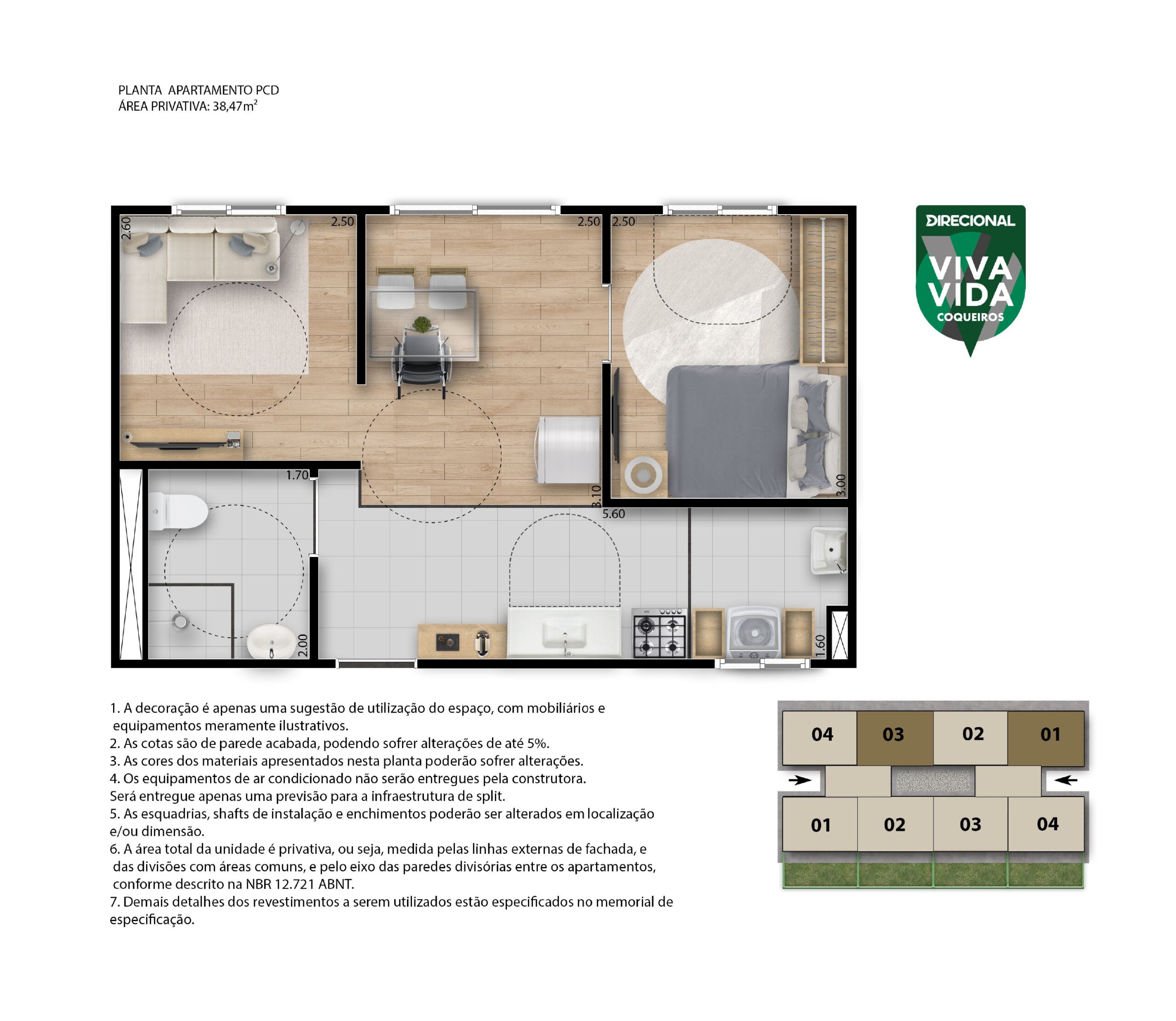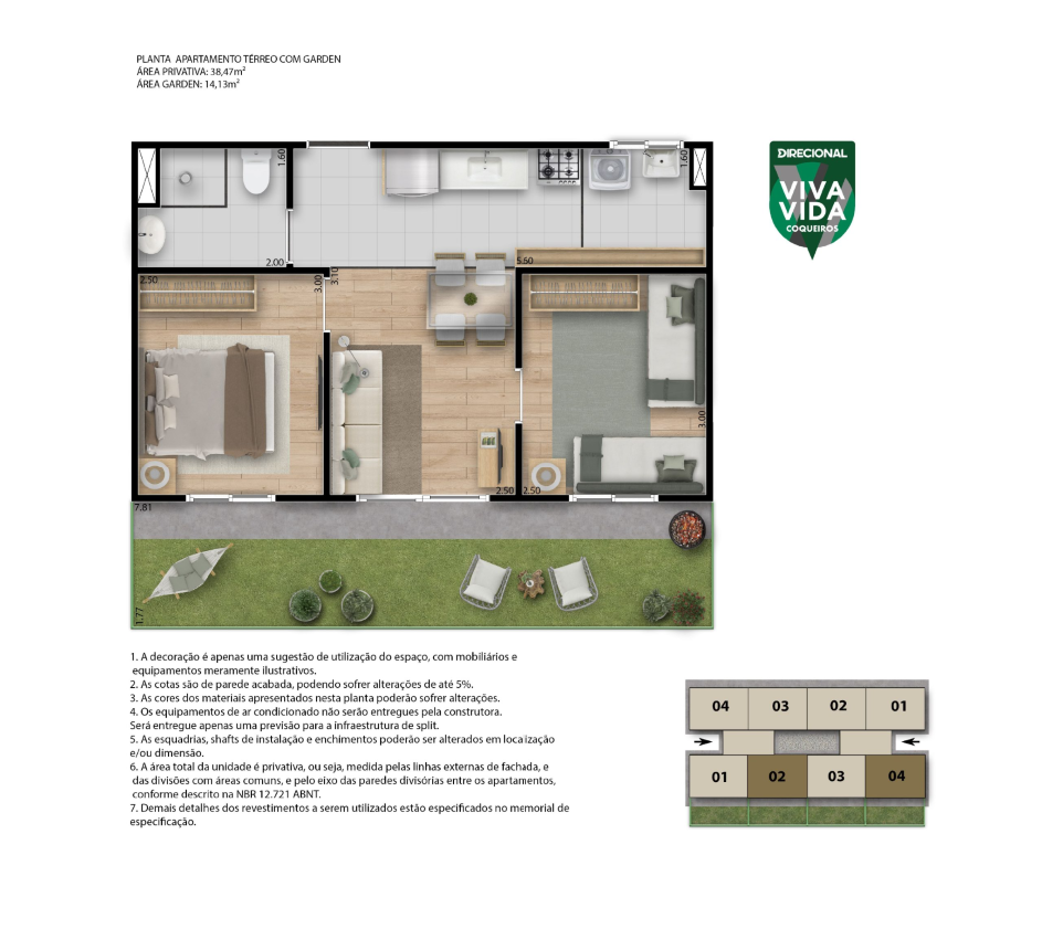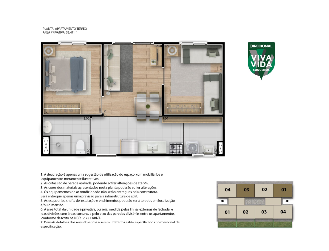Localizado na Rua Iracema, no bairro Jangurussu, o empreendimento oferece apartamentos de 1 e 2 quartos, todos com 38,47 m² bem distribuídos, além de opções adaptadas para PCD e unidades térreas com garden privativo de 14,13 m².